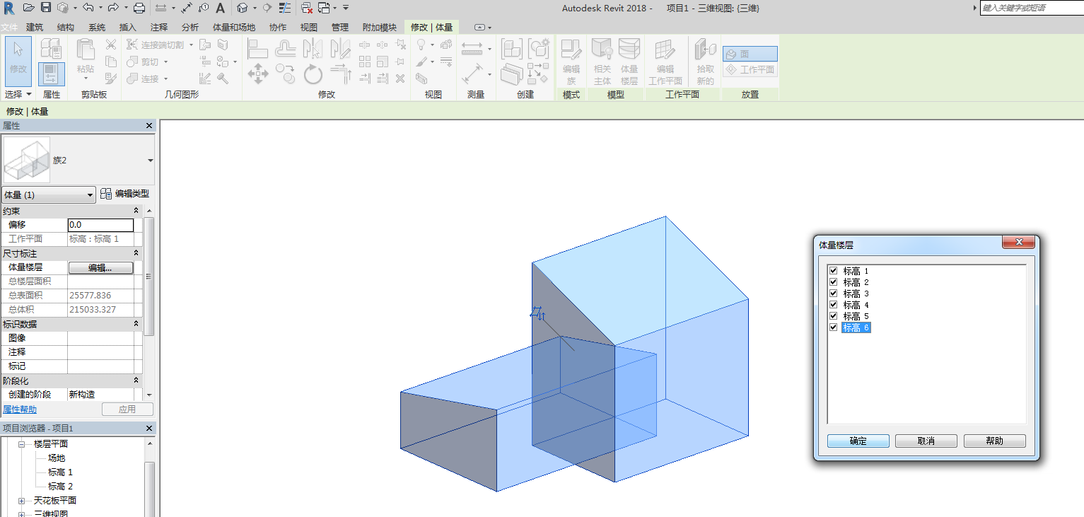 在項目文件中,根據我們項目中的標高設置就可以形成體量樓層
