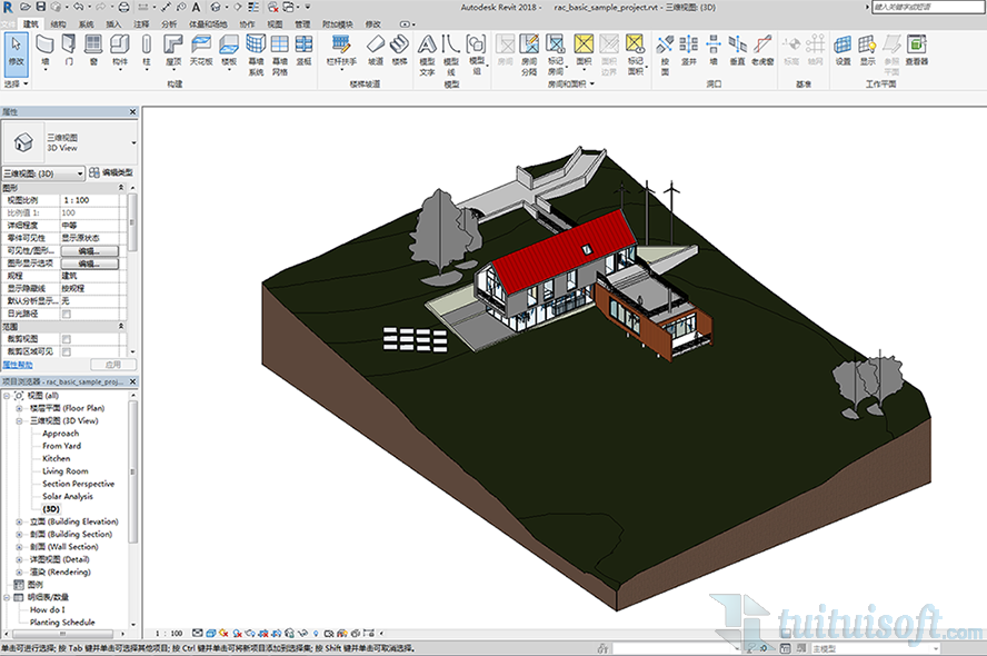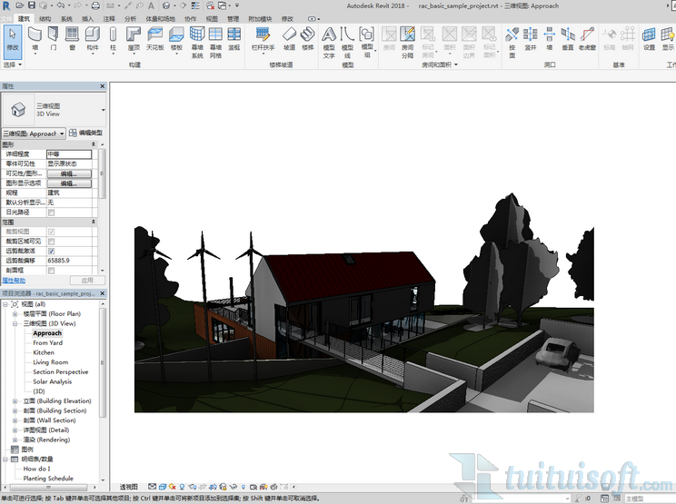 在SU中,我們一般是通過添加場景來保存我們的視圖,在revit,我們也有一個(gè)工具是用來保存視圖的。我們可以用revit自帶的樣例項(xiàng)目來演示,打開revit的建筑樣例項(xiàng)目文件,