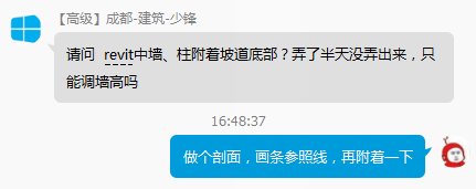 3、這時候再對墻或柱使用“附著頂部/底部”命令,不過要注意的是一定要選擇參照平面!(實際上我們是通過附著參照平面來達到附著坡道這么一個效果)