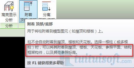 “附著頂部/底部”這個命令存在一些局限性,通過說明我們也可以看到(鼠標放在工具上幾秒鐘就可以看到了!),只能附著在屋頂、樓板、參照標高等,對于樓梯坡道這些是無法直接選擇的!!