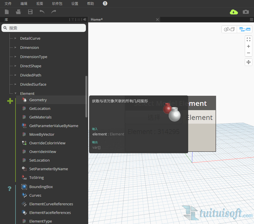 接著選擇 Revit - Elements - Element.Geometry 選項(xiàng)(獲取與該對(duì)象關(guān)聯(lián)的所有幾何模型)