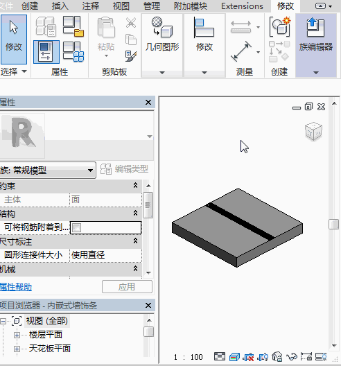 接著,我們再使用【基于面的公制常規模型】創建一個空心剪切族,空心剪切族的長寬高與墻飾條的樣式族相對應