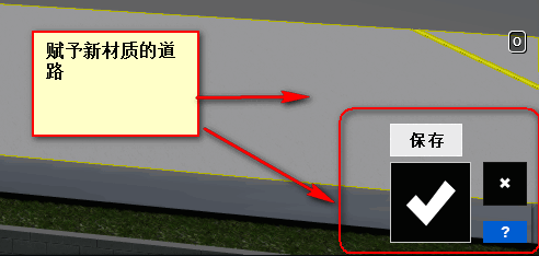 選擇瀝青材質后,則我們道路的顏色也會跟著改變。確定好材質后點擊打鉤完成編輯。