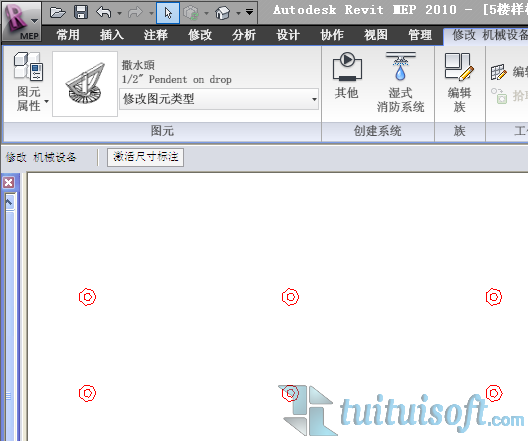 當僅存在下噴頭時的噴淋系統:畫噴頭時,需在噴頭的放置面創建一個標高。