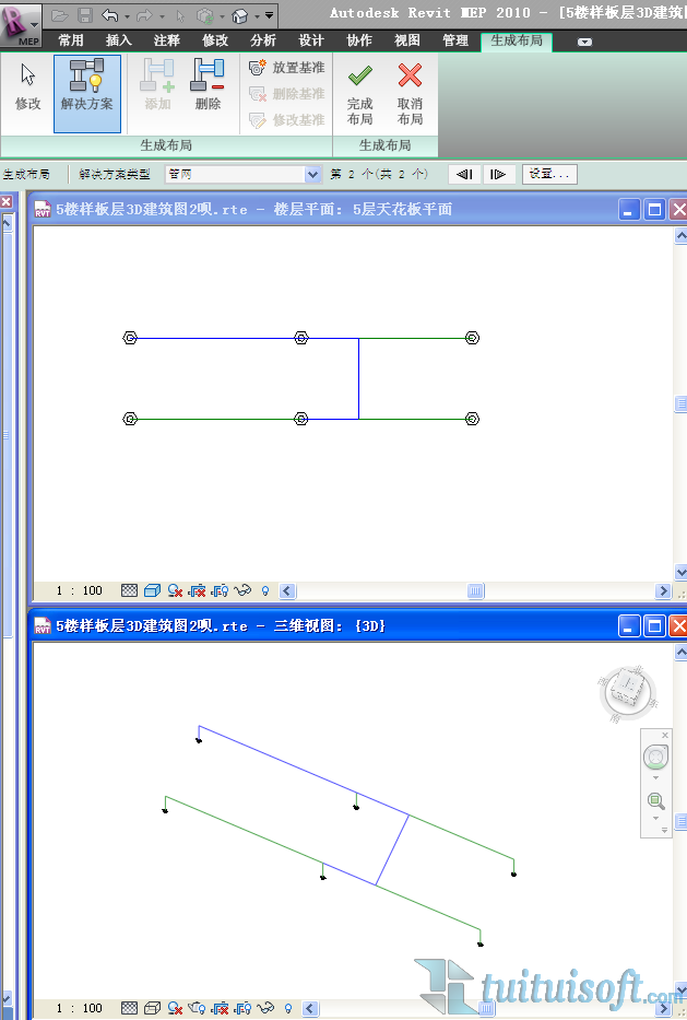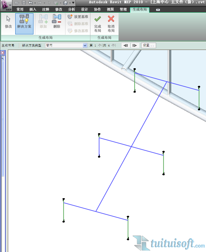 通過設置布局生成的主、支管高度,完成想要繪制的管路。