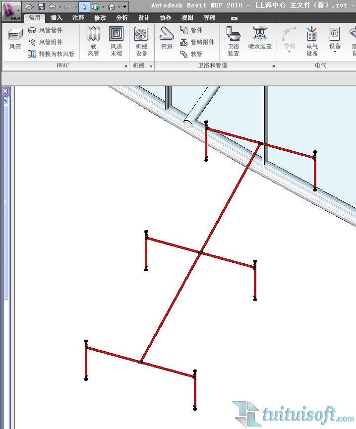 因繪制管線時有自動連接的功能,這樣我們就要利用這樣的優點。主要適用于不能自動生成布局的情況。當連接時一定要注意管線之間必須在同一標高,并且管線的參照面要一致。