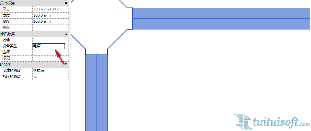 接著分別選擇弱電橋架,在屬性工具欄中的標識數(shù)據(jù)中的設(shè)備類型里選擇相應的類型,在這里選擇電信。同樣的方法,強電橋架選擇電力。