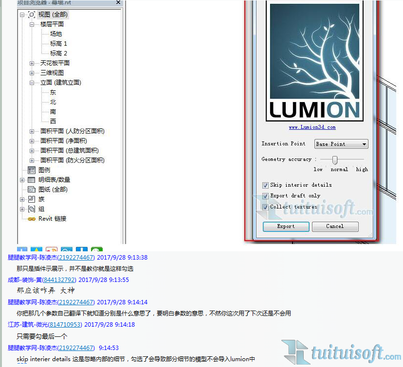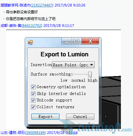 Geometry optimization意思是:幾何優化;Skip interior details意思是:跳過內部細節;Unicode support意思是:支持;Collect textures意思是:收集文理。對于導出的模型沒有族或者其他的細部構件,主要是在參數設置里沒有把“內部細節勾上。