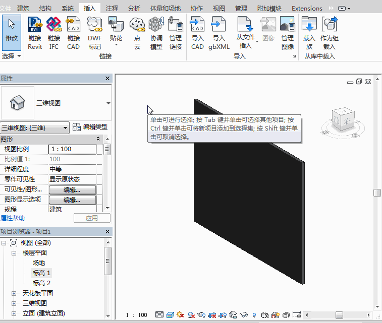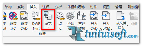在三維視圖中打開【插入】選項卡中的【貼花】