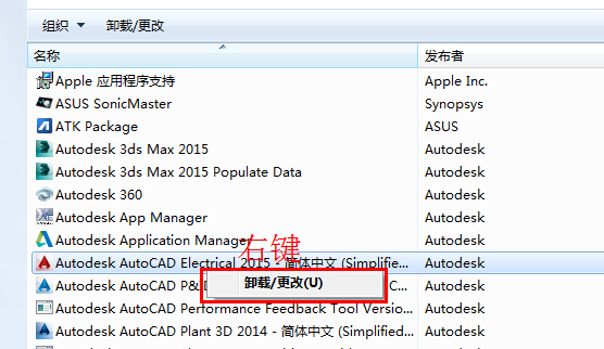 2、從“添加或刪除程序”對(duì)話框中,選擇最新版本的 AutoCAD Electrical,然后單擊“更改/刪除”按鈕。
