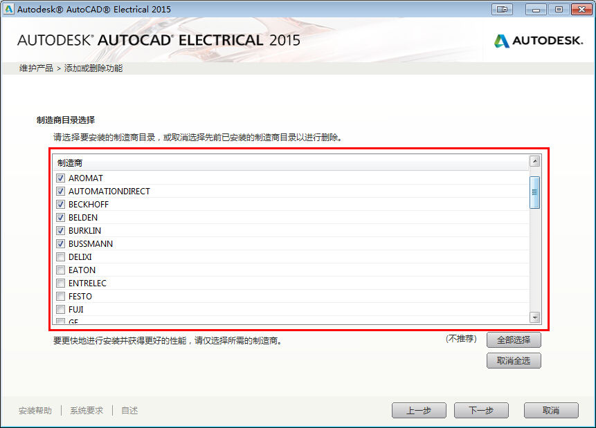 5、在“制造商目錄選擇”頁(yè)面上,單擊“下一步”。