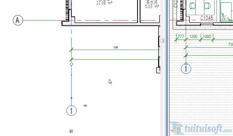 因此,利用軸網的2D顯示模式,可以對個別視圖中軸網的特殊顯示要求進行個性調整,整體圖面表達效果更加完整。