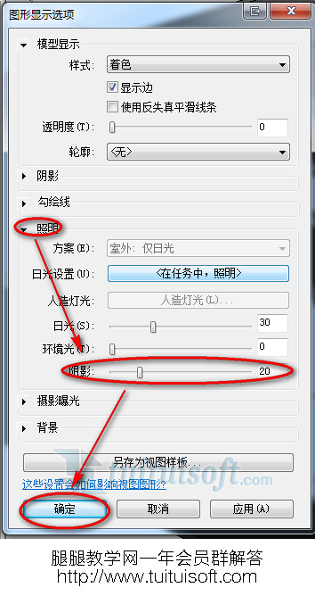 2、點(diǎn)擊照明—選擇陰影選項(xiàng),將數(shù)值改小