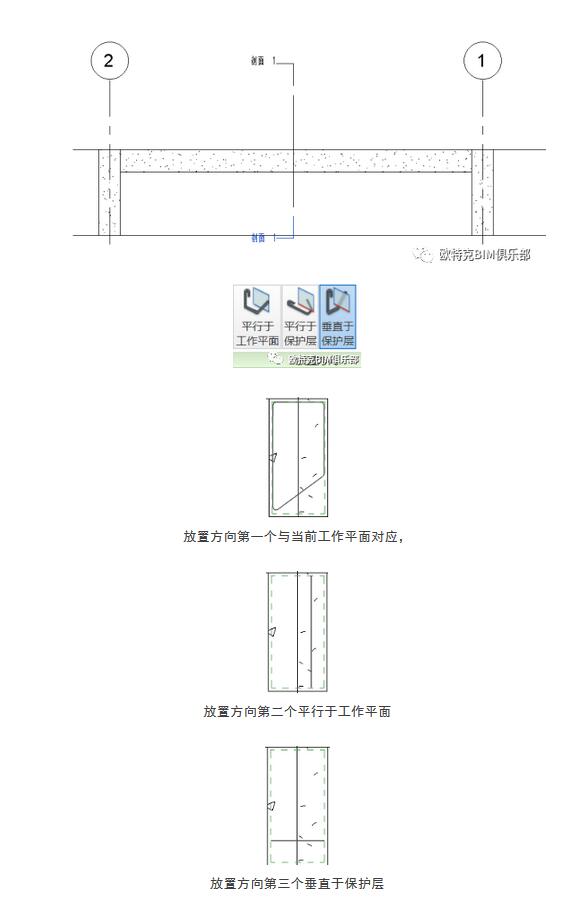 在這里,有三個放置平面,其中,第一個主要是在剖面中繪制使用。第二個近保護層參照繪制離你最近的主體面內內向遠開始繪制,第三個,顧名思義,繪制離你最遠的主體平面內向近開始繪制。
