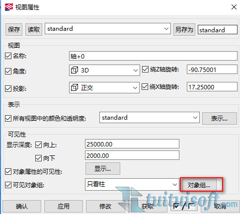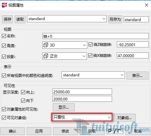 點擊確認之后,會出現之前的對話框,這時發現在可見對象組當中就有了創建的過濾器“只見柱”,若是想取消隔離的話,也是在對象組當中選擇“standard”