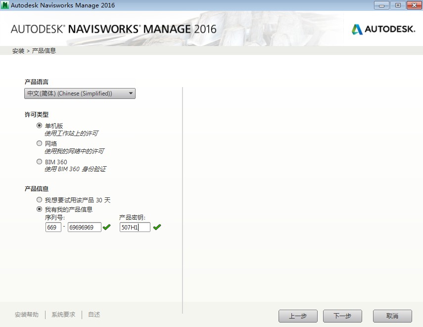 2、解壓完畢后自動彈出安裝界面,點擊“安裝” ,然后選擇“我接受”,點擊下一步,輸入序列號“666-69696969”,產品密匙:507H1,點擊下一步