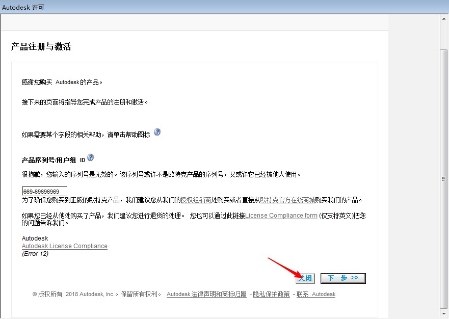 6、如果出現如下圖所示系列號無效,則關閉后再重新點擊激活。