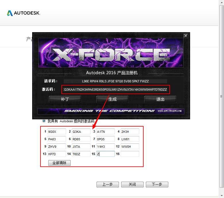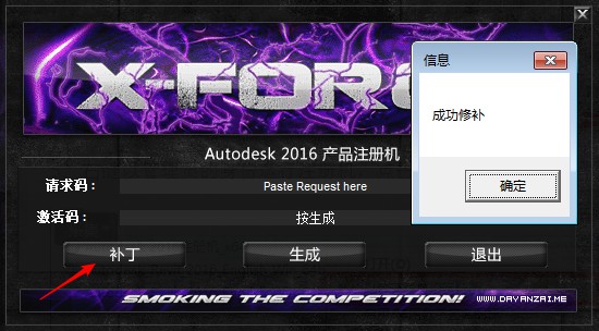 8、成功修補后,將程序中的申請號復制入請求碼項內,點擊“生成”