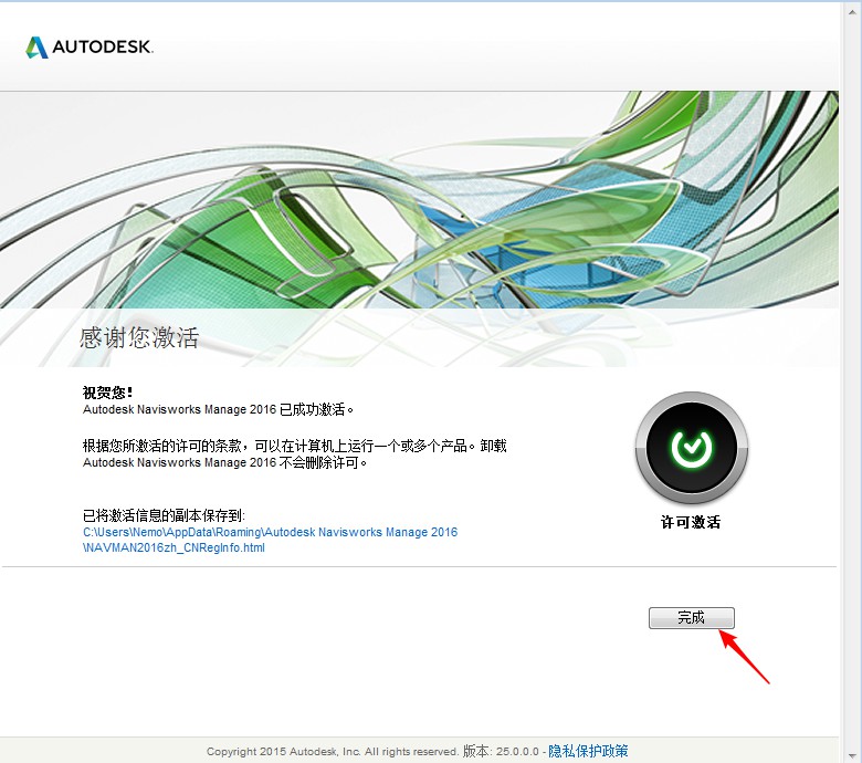 5、安裝完畢后,斷開計算機的網絡連接,運行 Navisworks Manager 2016,點擊“激活”。