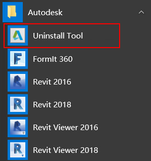 Autodesk官方對近幾年推出的新版本軟件都提供了專用的卸載工具,在安裝軟件的同時也安裝了卸載工具。單機計算機系統“開始”菜單,進入【Autodesk】軟件產品組,“Uninstall Tool”就是用于卸載Autodesk產品的工具。用戶若安裝Revit的方式不當或在使用過程中遇到無法解決的問題,都可以通過這個卸載工具“Uninstall Tool”將Revit進行卸載后重新安裝使用。