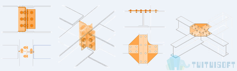 自定義連接可以包括鋼圖元以及標準的連接、參數化的剪切或支持的鋼結構柱和框架形狀的族。同時也可以組合任意的鋼零件、標準連接和參數化剪切以定義自定義連接。