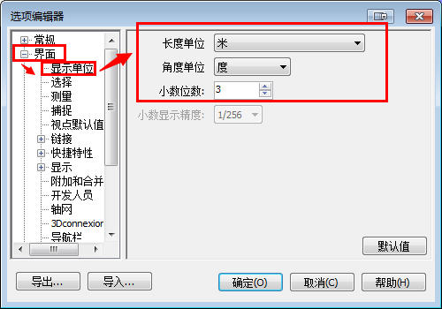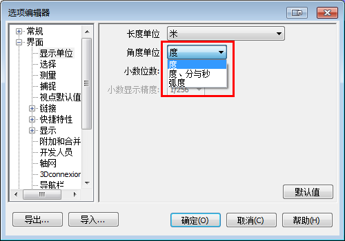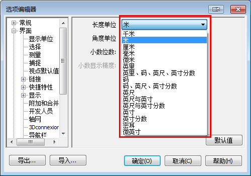 3、設(shè)置單位類型和選擇長度或角度單位進行設(shè)置