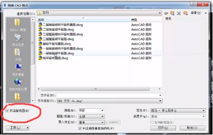 2、 選擇快捷鍵AL,將導入的圖紙對齊繪制的軸網,選擇CAD圖,并勾選前景選項