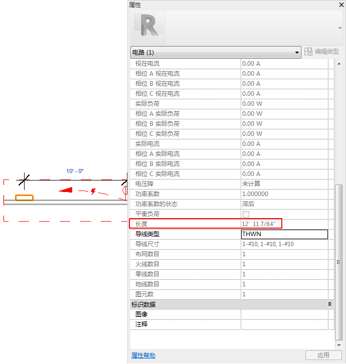 程序會計算出線路中配線的總長度,并將其顯示為“屬性”選項板中的“長度”值。