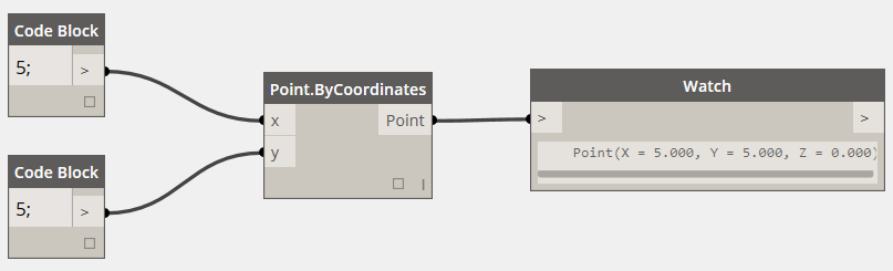 首先,如果我們想在Dynamo里創建一個點,用Point.ByCoordinates結點,那么大致是這樣子的: