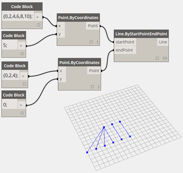 設置Line.ByStartPointEndPoint的Lacing選項為Longest: