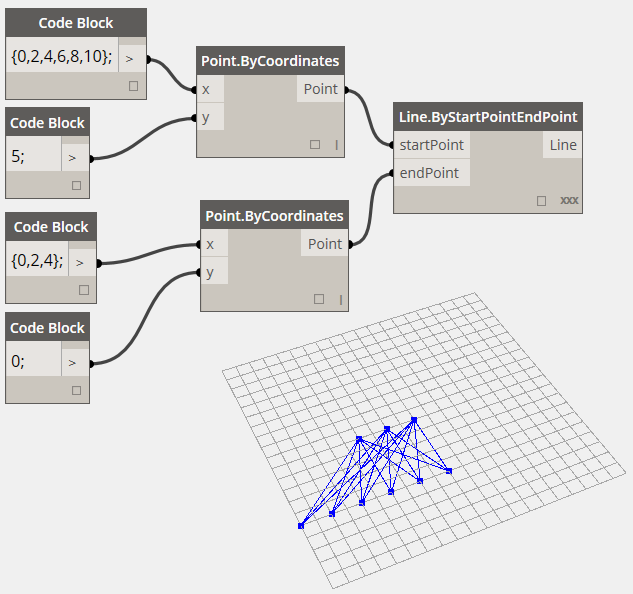 設置Line.ByStartPointEndPoint的Lacing選項為Cross Product: