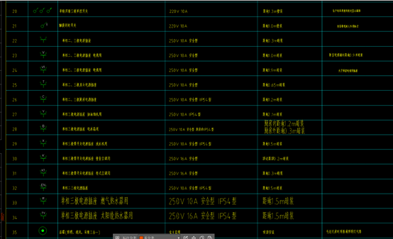 接下來進行第二步,計算豎向管長度。看圖例表,插座分別為不同類型,每種類型的離地高度或距頂高度不盡相同。