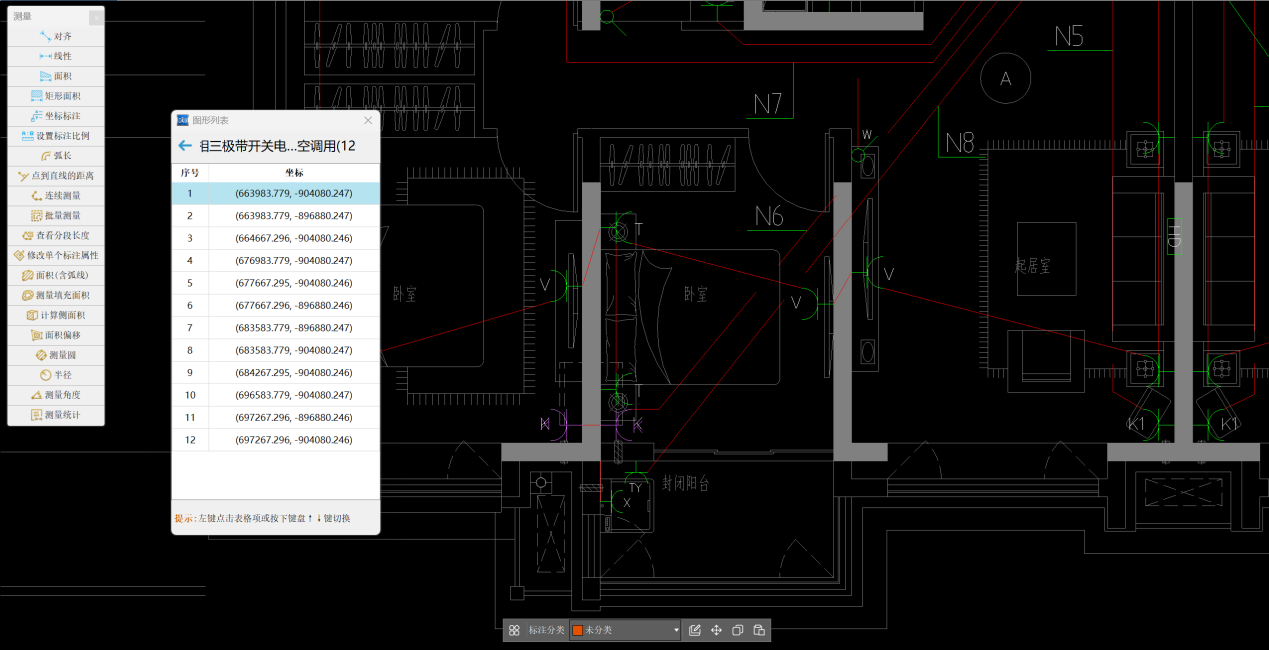 觀察該項目標準層插座平面圖,依次點擊測量-批量測量-按已選線段的圖層過濾,