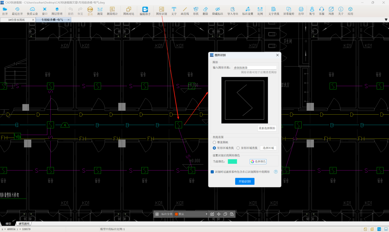 火災(zāi)報(bào)警系統(tǒng)消防電器具數(shù)量可以不在手動統(tǒng)計(jì),CAD快速看圖的圖形識別功能可以快速識別圖形數(shù)量,計(jì)算計(jì)量不發(fā)愁。