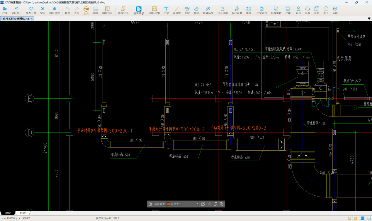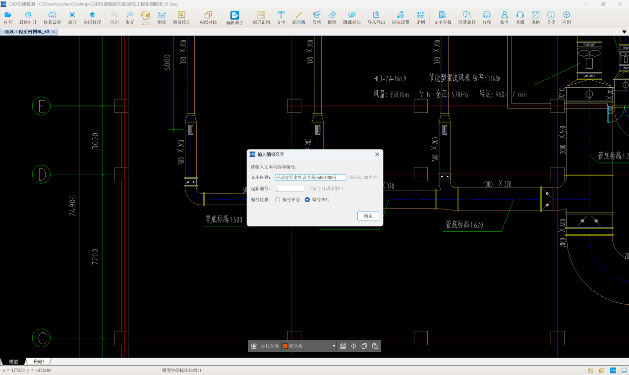 風閥的計量可以采用編號文字功能,特別是數量較少的時候,結合標注分類、提取文字等功能 ,更加方便。
