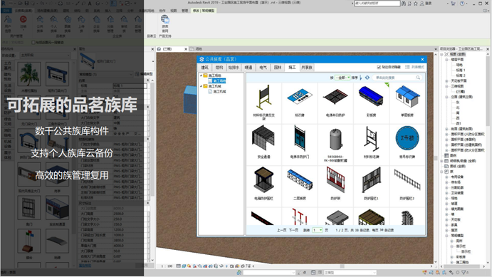 主要功能:品茗HiBIM場布軟件是基于Revit的高效場布建模工具,趨近CAD的建模習慣,在降低Revit軟件學習使用門檻的同時,其簡單的操作體驗,讓場布建模更高效、更愉悅。