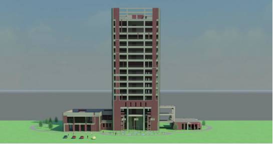 銀行大樓位于福建省寧德市,占地面積2808m2,總建筑面積19101.9m2,地下1層、地上15層、高75米,是一個(gè)集銀行營業(yè)廳、宴會(huì)廳、多功能會(huì)所、證券交易所、辦公等于一體的綜合大樓。