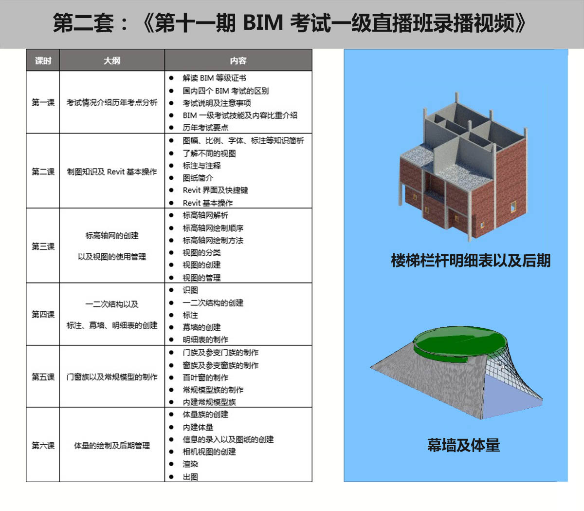 第二套:《第十一期 BIM 技能等級考試一級直播班錄播視頻》