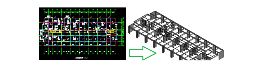 建筑翻模和結(jié)構翻模能夠利用現(xiàn)有的DWG圖紙快速在Revt中轉(zhuǎn)換成模型。