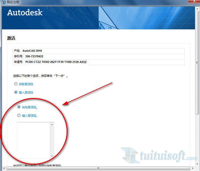 三、把注冊機中得到的激活碼復(fù)制粘貼到CAD2010的激活對話框中,點“下一步”,提示激活成功。