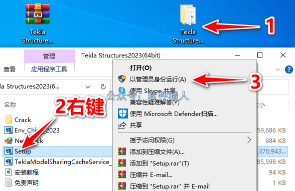 2、打開解壓后的【Tekla Structures2023(64bit)】文件夾,鼠標右鍵【Setup】選擇【以管理員身份運行】。