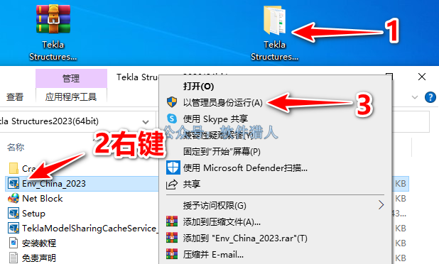 14、打開解壓后的【Tekla Structures2023(64bit)】文件夾,鼠標右擊【Env_China_2023】選擇【以管理員身份運行】。
