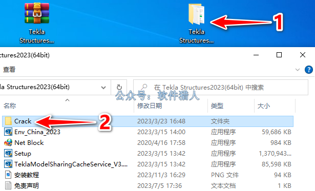 21、打開解壓后的【Tekla Structures2023(64bit)】文件夾,雙擊打開【Crack】文件夾。