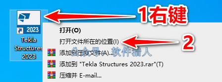 23、鼠標右擊桌面【Tekla Structures 2023】圖標選擇【打開文件所在的位置】。