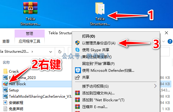 26、打開解壓后的【Tekla Structures2023(64bit)】文件夾,鼠標右擊【Net Block】選擇【以管理員身份運行】。