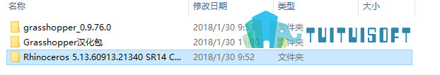 1、下載解壓包之后,打開文件夾后會看到以下有三個文件夾,在這里選擇Rhinoceros 5.13.60913.21340 SR14 CHN雙擊這個文件夾