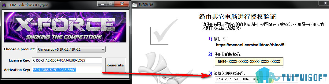 18、同樣的在出現以下的對話框當中也是要回到注冊機當中將Activation key這欄的驗證碼進行復制到軟件當中的授權驗證對話框當中的驗證碼位置