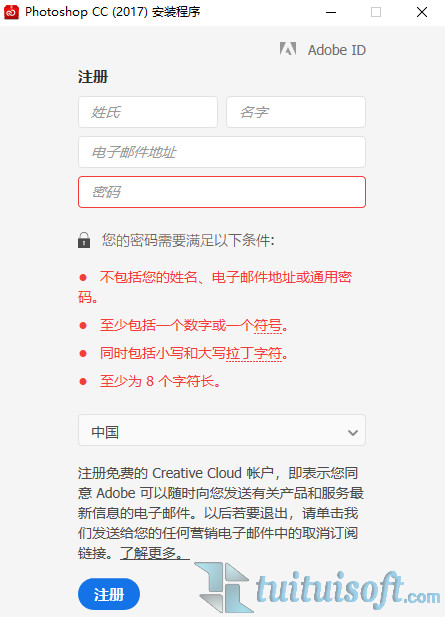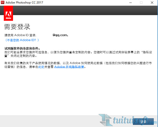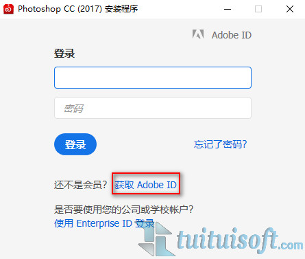 2.首次使用的,在安裝的時候我們需要注冊一個賬號,若是已經有賬號的用戶可以直接登陸若是沒有則點擊“獲取Adobe ID