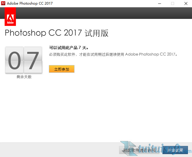 8.接著出現一個試用版的對話框,在對話框當中點擊“開始試用”