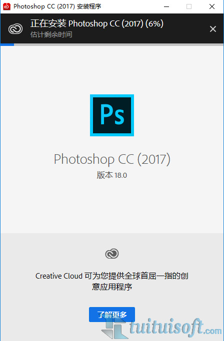 5.點擊完兩次的“繼續”之后,就直接出現了軟件正在安裝的狀態,正常情況下默認安裝的路徑是C